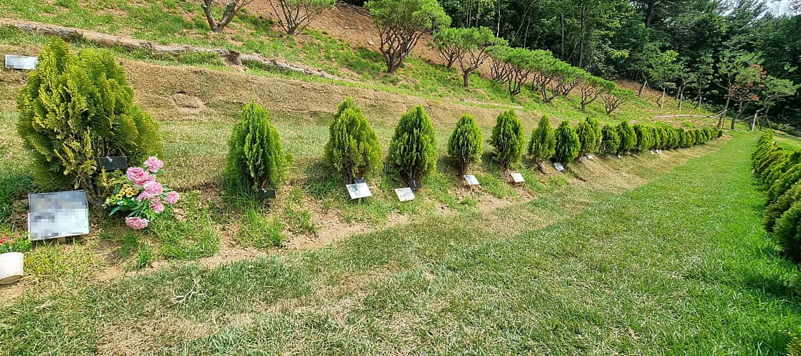 4. 잔디때위에 비석 또는 표지석을 올린다.